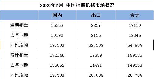 2020年7月挖掘机销量数据简报